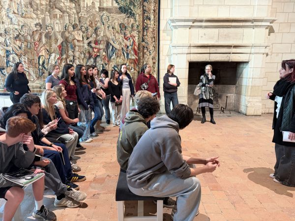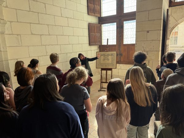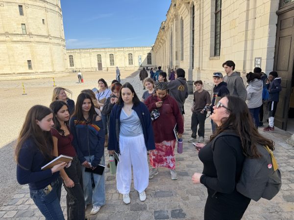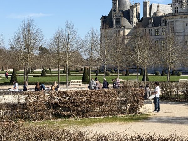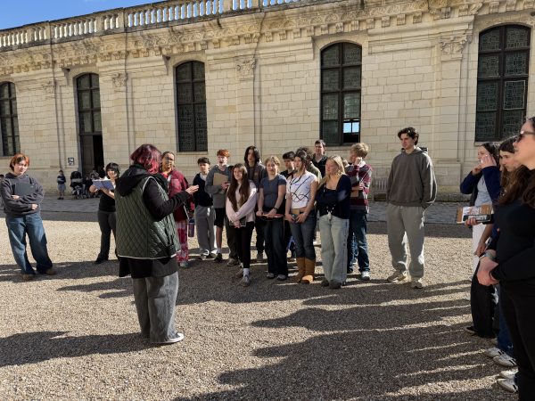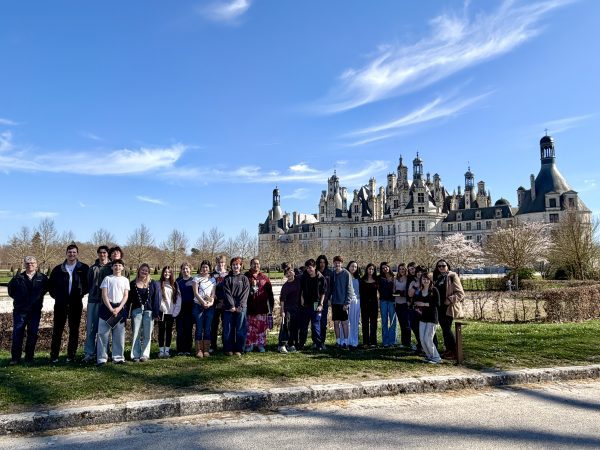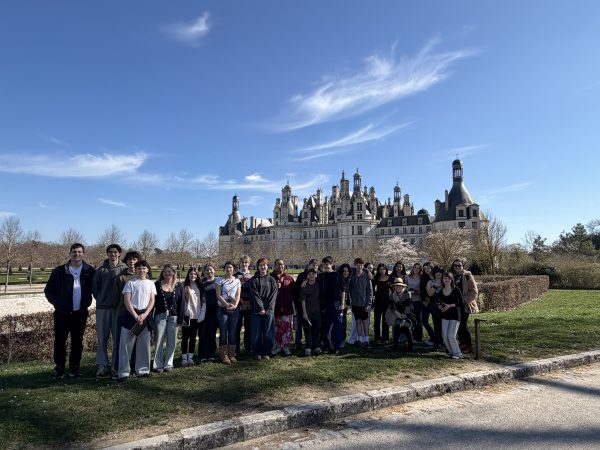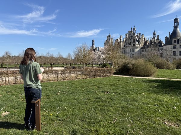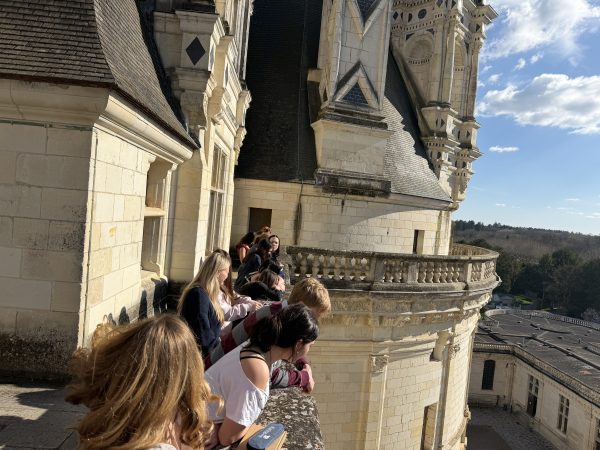 After a smooth landing in France on March 3rd, our 9th Grade travelers—21 energetic students, 2 Senior TAs, and 4 adult chaperones—hit the ground running with an unforgettable first taste of French history. Before settling into their home stays in Orléans this evening, we ventured to the Château de Chambord, a jewel of the Loire Valley and a testament to 16th century Renaissance ambition. Commissioned by François Ier in the 16th century as a hunting lodge and symbol of royal power, Chambord marries medieval fortitude with Renaissance elegance and symmetry. Student CC Ragalevsky, who studied Chambord this semester, gave added insight during the visit. We spoke as a class (and then heard from a tour guide) about François Ier’s and Leonardo da Vinci’s mutual affection; and that theme will return prominently when we visit Amboise next week.